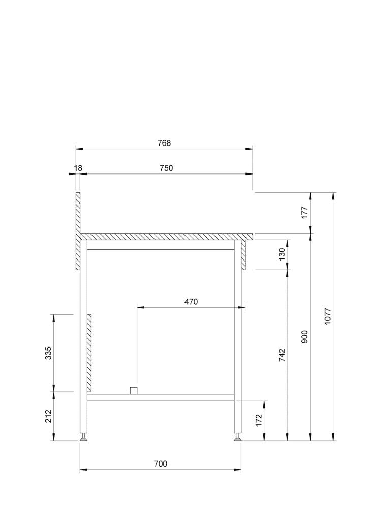| Construction | Piètement en forme de H réalisé en tube 30x30 mm et revêtu après traitement d'une peinture époxy de coloris blanc RAL9010 cuite au four | Ossature sous le plan de travail avec piètement en H, bandeau frontal et cache-fluide en mélaminé deux faces blanc hydrofuge épaisseur 18 mm, bords ABS 10/10e blancs |