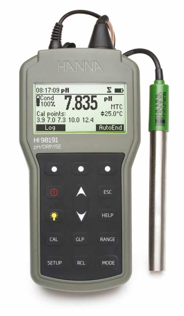 pH-/mV-/ionomètre portatif professionnel étanche, résolution 0,001 pH, système Calibration Check