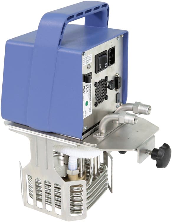 En option, un serpentin refroidisseur peut être raccordé à l’appareil pour réguler la température à une température inférieure ou proche de celle ambiante.