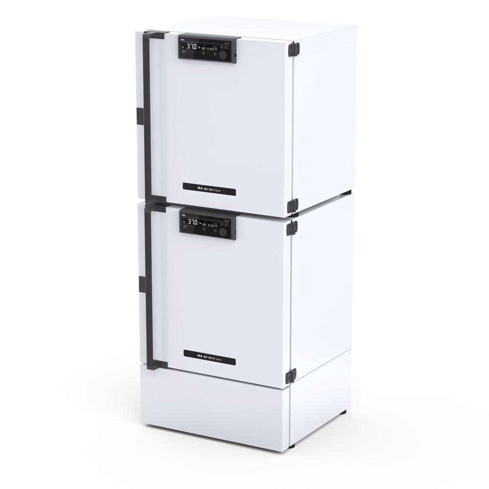 Versatile accessories: Up to two IKA incubators can be stacked. An incubator shaker (INC FS 125) or incubator (INC 125 F) can be placed on top of the INC 125 FC (appropriate accessories required), Door lock (optional accessory), Different shelves available