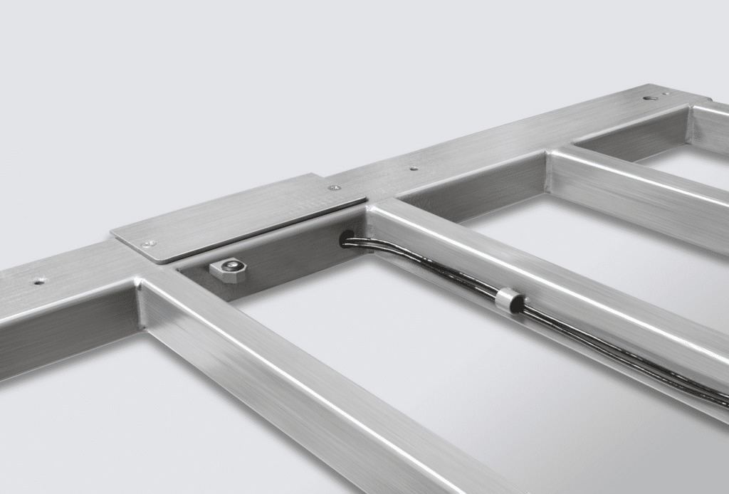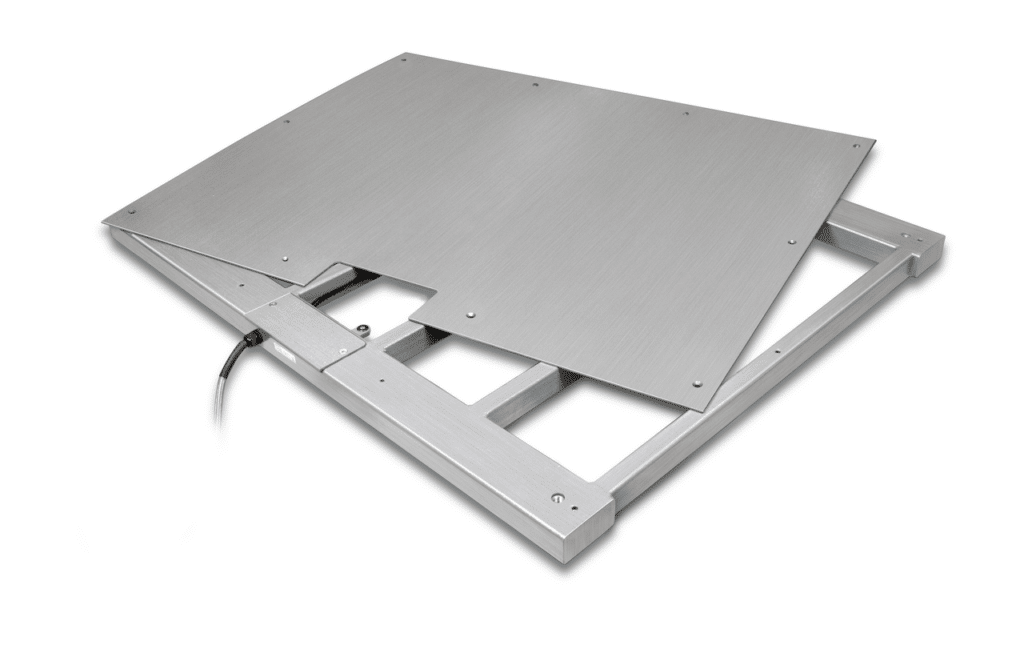 Plateau de pesée vissé par le haut avec vis en inox, hygiénique et facile à retirer et à nettoyer