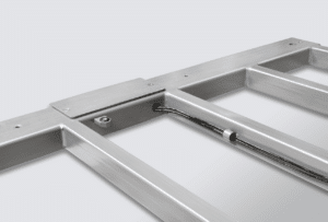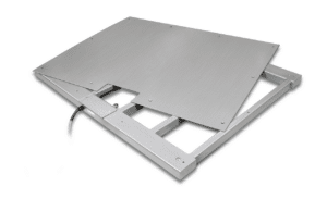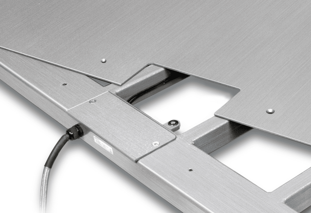 Pont bascule en inox avec plateau de pesée vissé (IP68) et afficheur en inox (IP65), homologation en option