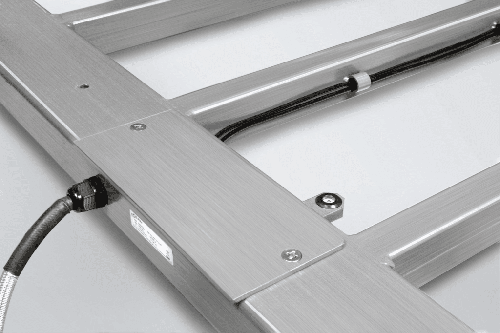 Pont bascule : inox, extrêmement résistante à la torsion grâce à une épaisseur importante du matériau, 4 capteurs inox soudés, avec protection contre la poussière et les projections d’eau IP68. Également disponible comme composant sans afficheur KERN KFP-V40