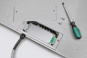 Nivellement pratique du pont bascule et accès à la boîte de raccordement par le haut