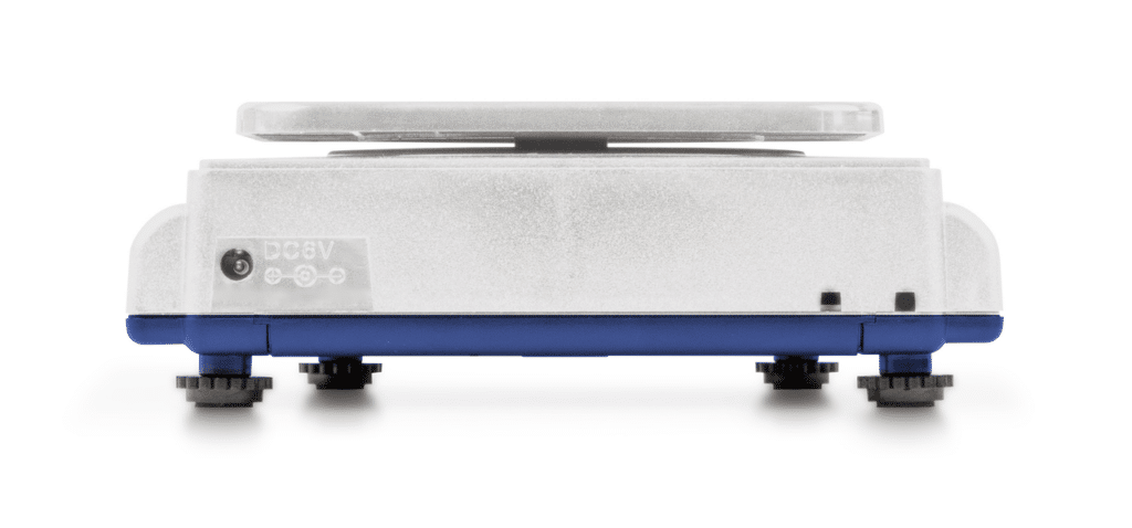 Niveau à bulle et vis de nivellement de série pour une mise à niveau exacte de la balance ce qui permet dʼobtenir des résultats de pesée très précis