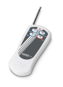 Télécommande radio de série. Portée jusqu‘à 20 m. Toutes les fonctions peuvent être sélectionnées (sauf ON/OFF). L×P×H 65×24×100 mm. Piles incluses, 1×12V, 23A