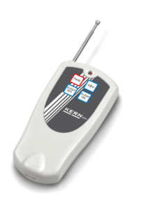 Télécommande radio de série. Portée jusqu‘à 20 m. Toutes les fonctions peuvent être sélectionnées (sauf ON/OFF). L×P×H 48×10×95 mm. Piles incluses, 12 V, Typ 23A
