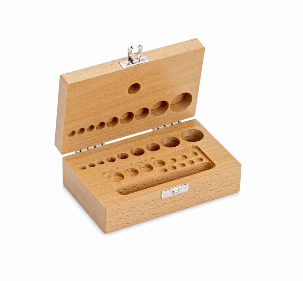 F2 + M1 + M2 Étui en bois pour jeux de poids individuels 1 mg - 100 g