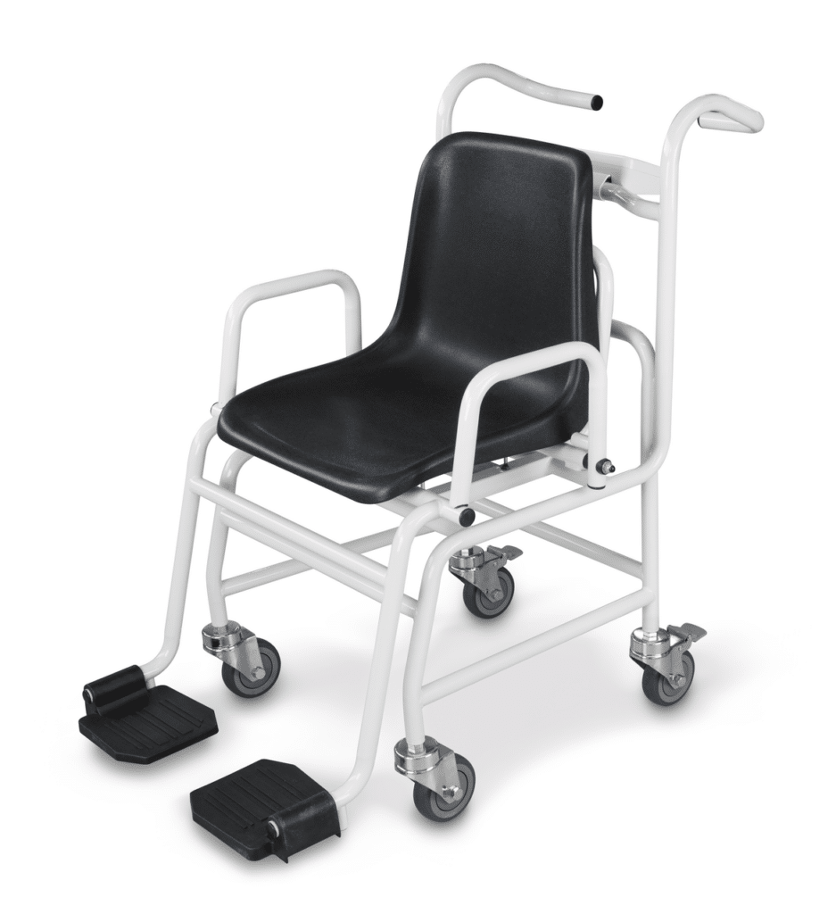 Fauteuil pèse-personne mobile à lʼergonomie optimisée pour une pesée sûre et pratique