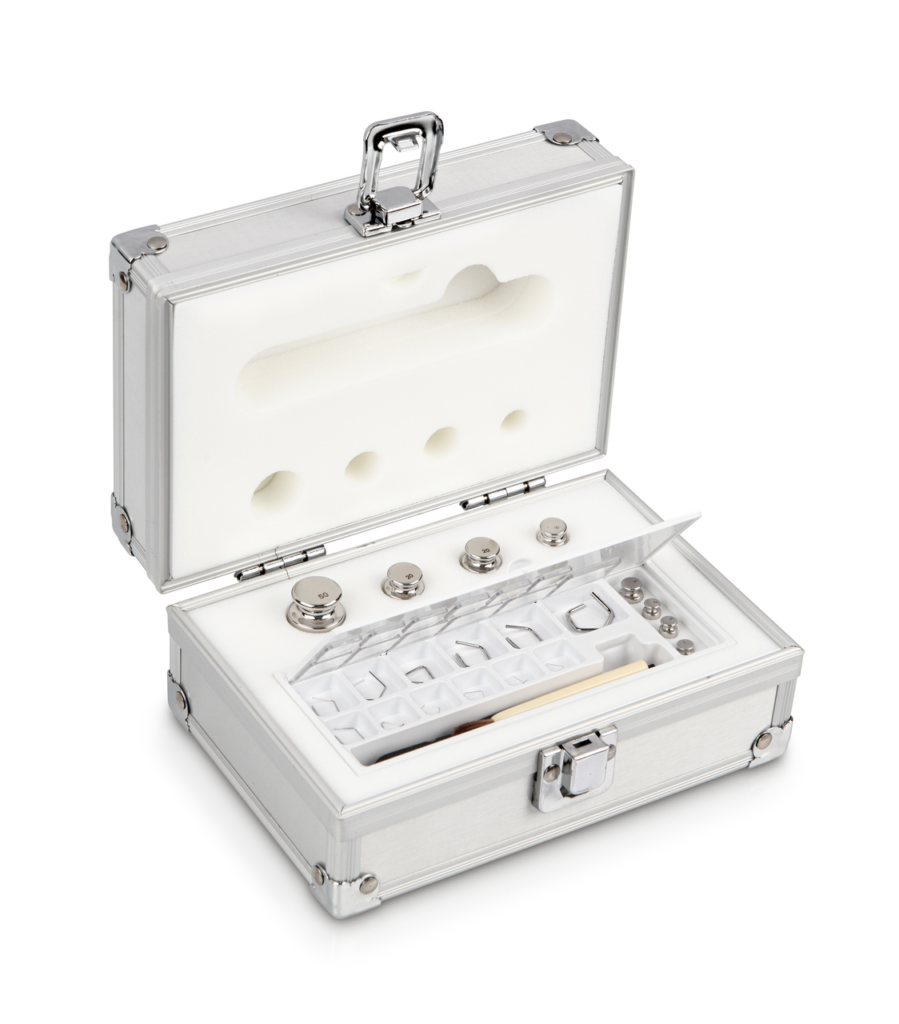 Jeu de poids, E1, 1 mg - 50 g, Bouton, Inox poli, dans un boîtier en aluminium