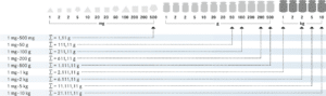 Les poids en milligrammes contenus dans ce jeu de poids (composition 1 mg - 500 mg) se trouvent dans un étui en plastique séparé