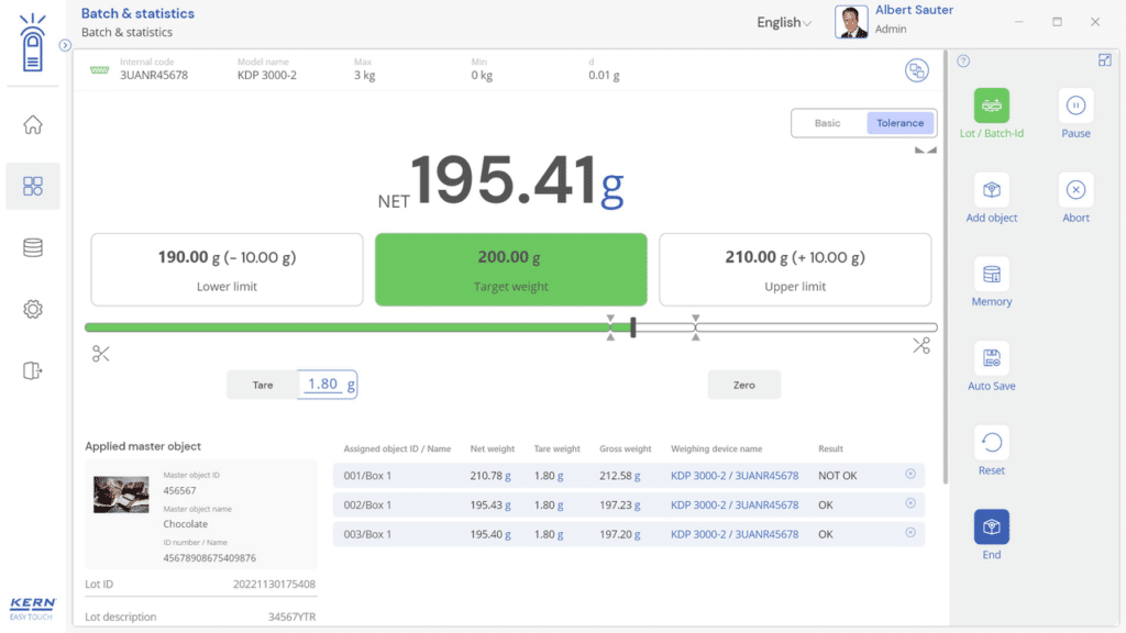 KERN Logiciel EasyTouch SET-31 Tolerance