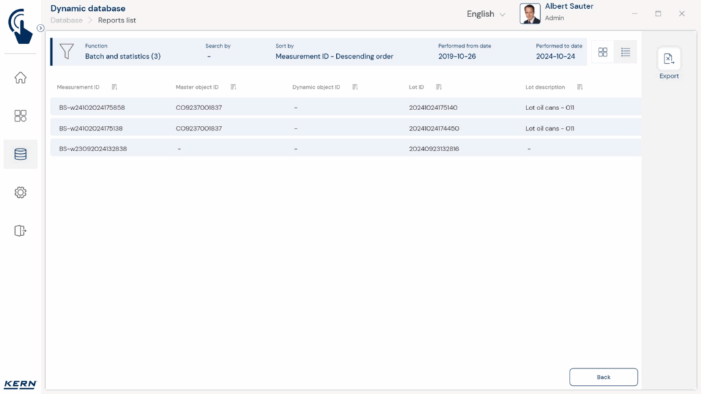 KERN Logiciel EasyTouch SET-37 Export Manager