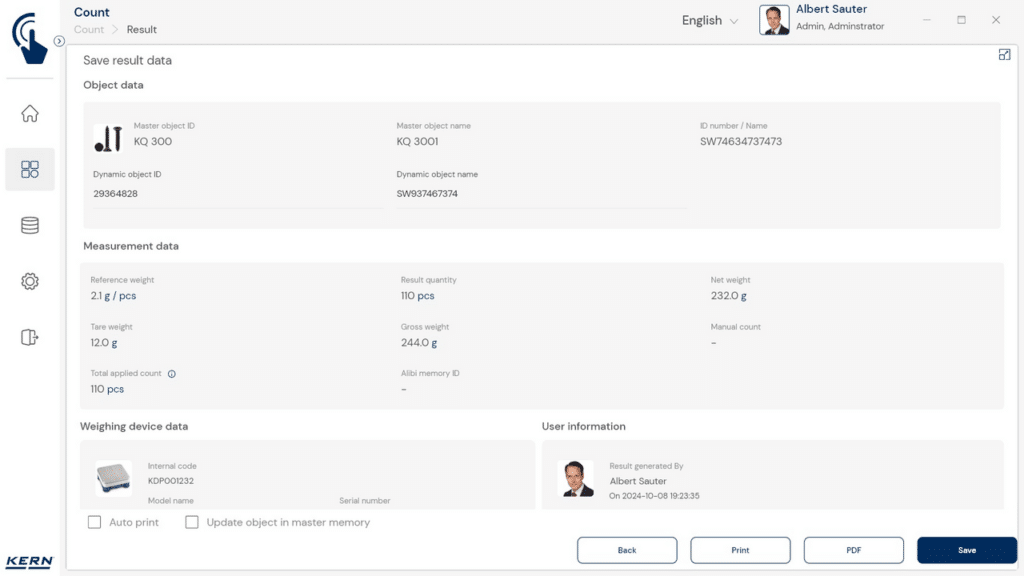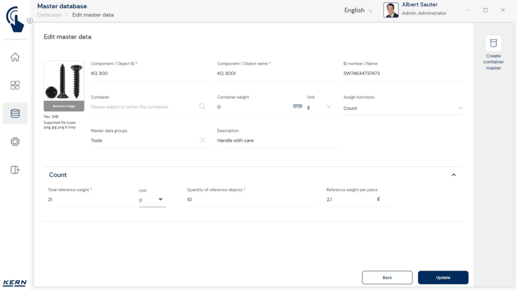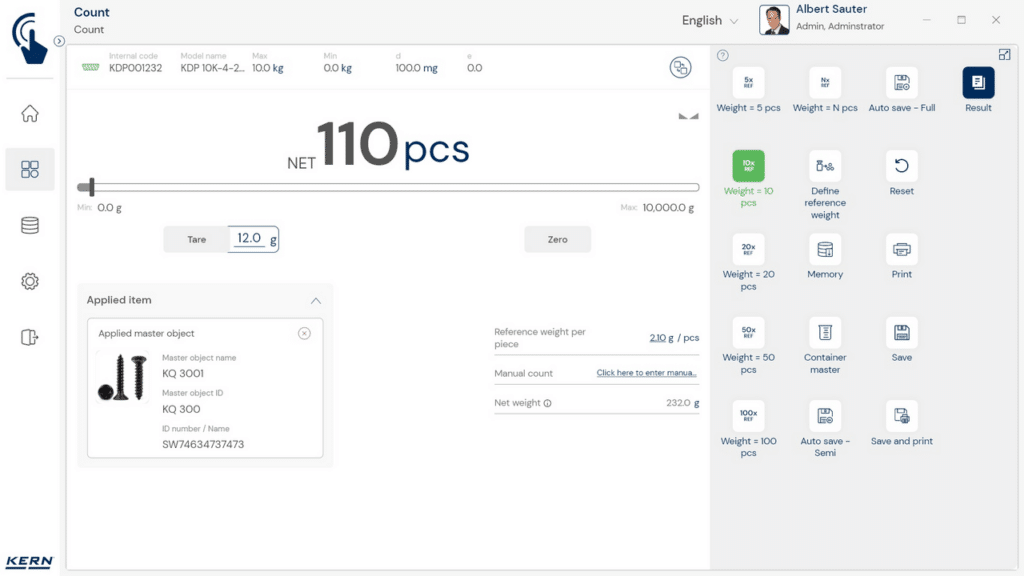 KERN Logiciel EasyTouch SET-35 Assembly Count