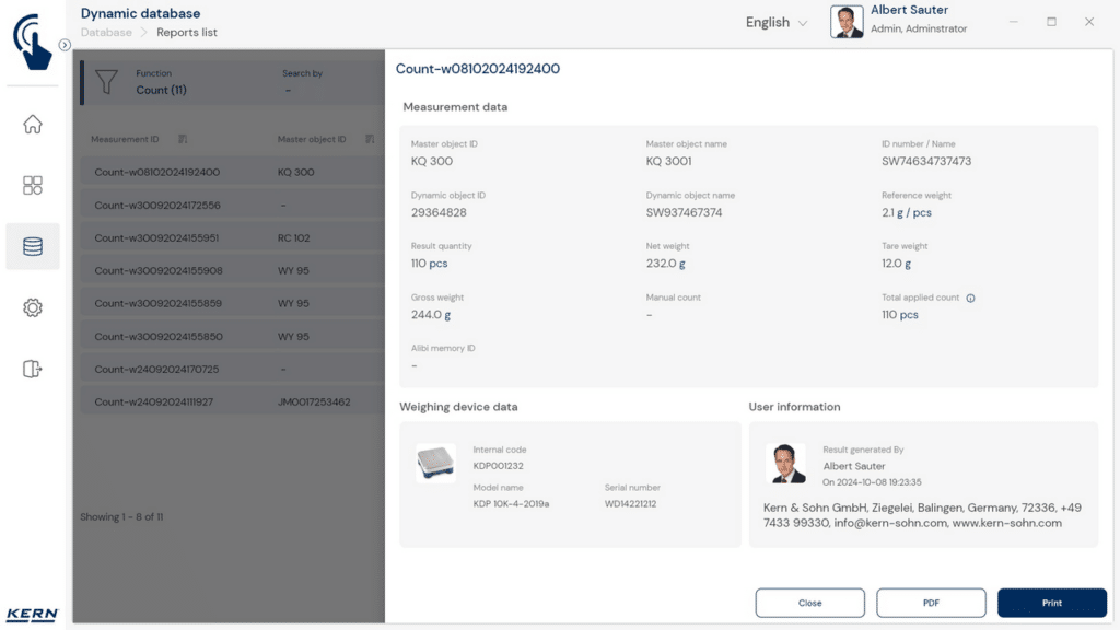 KERN Logiciel EasyTouch SET-16 Batch and Statistics