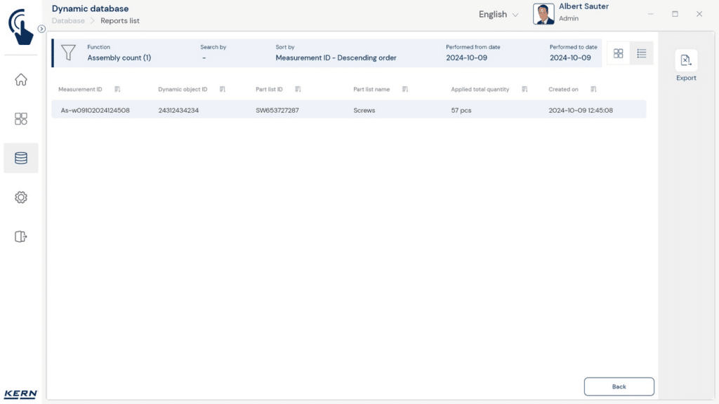 KERN Logiciel EasyTouch SET-37 Export Manager
