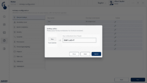 Configuration des touches de raccourci : la définition des combinaisons de touches peut être effectuée par l'administrateur du système ou par une personne autorisée. Pour chaque fonction souhaitée, il est possible de définir une combinaison de touches unique et spécifique à l'utilisateur