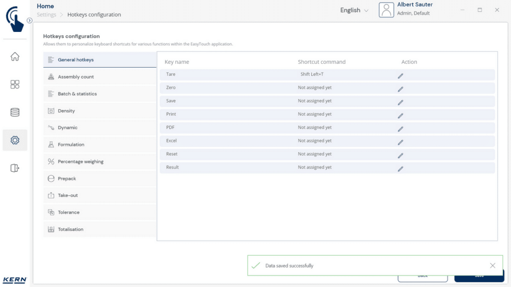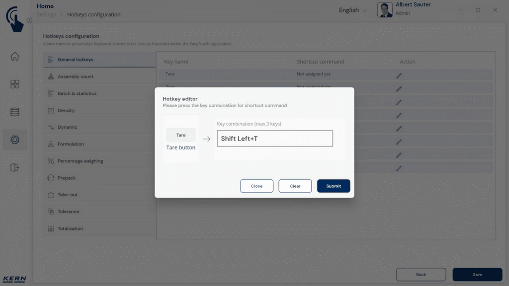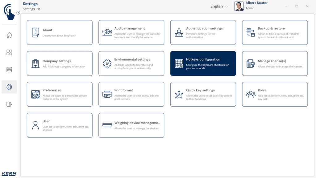 KERN Logiciel EasyTouch SET-311 Quick Key