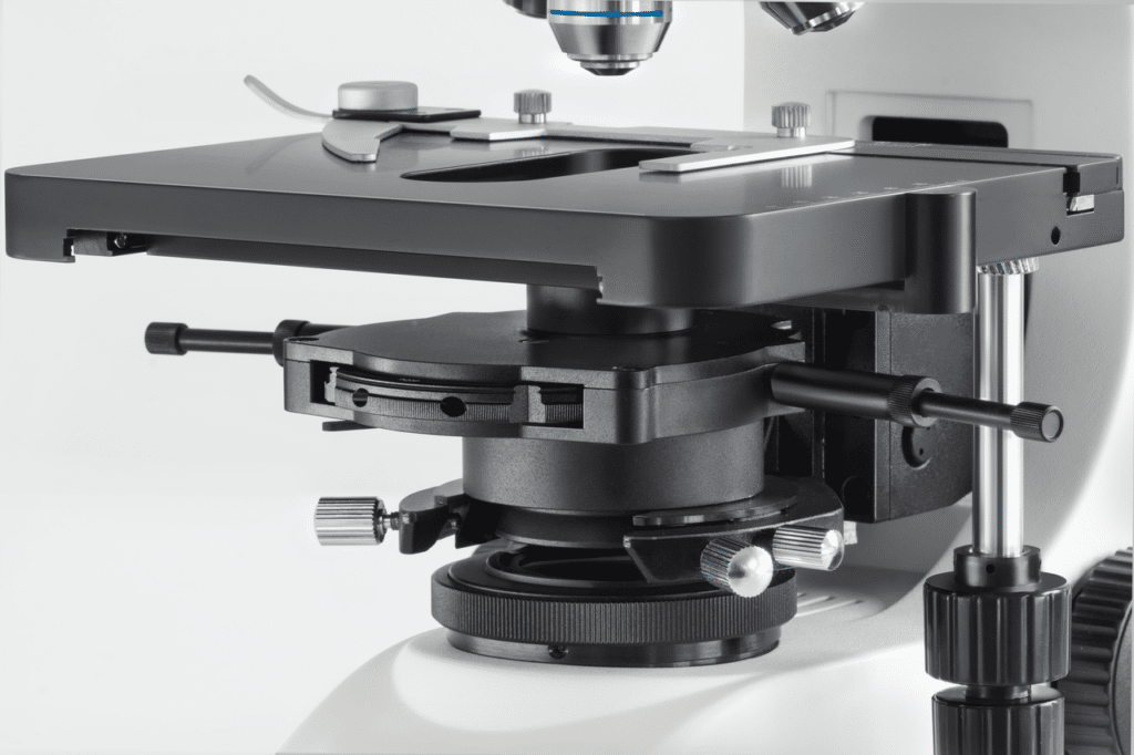 Cette série dispose d’un éclairage de Koehler professionnel à diaphragme de champ ainsi que d’un condenseur d’Abbe 1,25 centrable et réglable en hauteur à diaphragme d’ouverture réglable