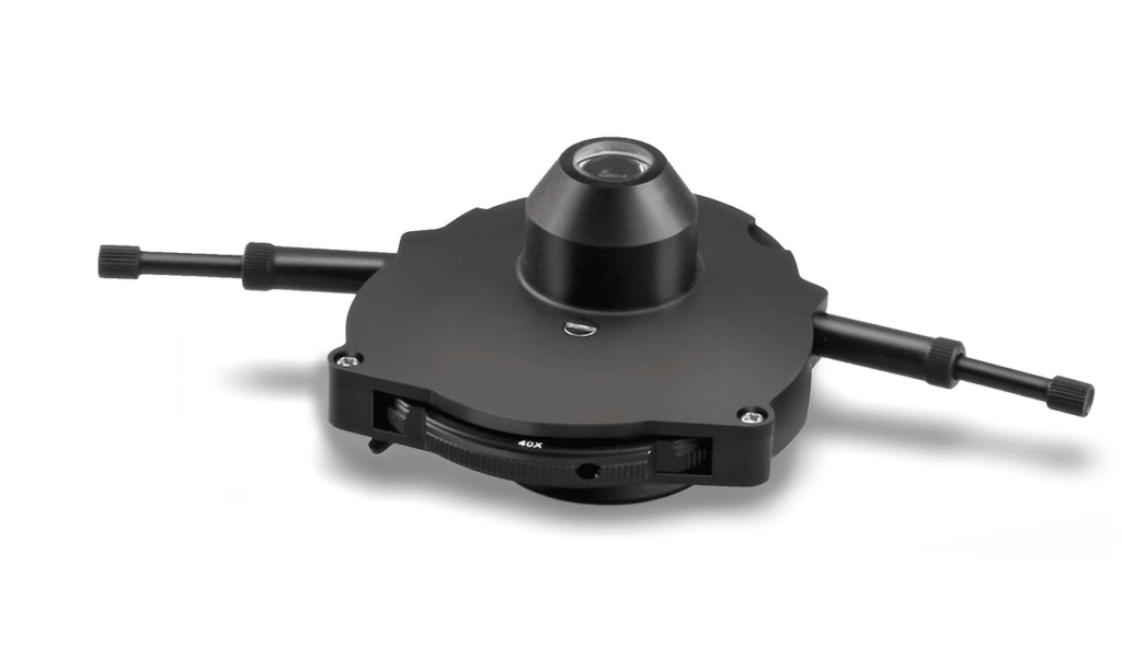 La très grande table à mouvements croisés à réglage mécanique avec vis micrométrique et macrométrique ergonomique, coaxiale des deux côtés, permet un réglage et une mise au point rapides et précis de votre échantillon