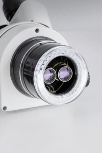 Un point fort du KERN OZL 466 est son anneau lumineux LED intégré puissant et à intensité variable, garantissant un éclairage régulier et sans ombre. Il comprend de plus une unité à lumière transmise.