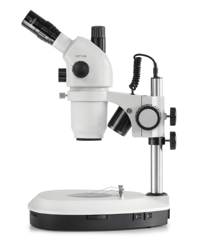 Le KERN OZP 558 est disponible en variante à lumière incidente et transmise LED 3 W puissante et à réglage variable pour un éclairage optimal et très contrasté de votre échantillon