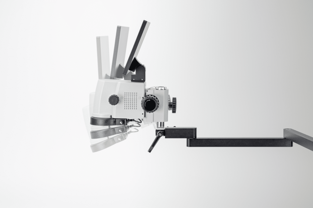 Le support universel intégré avec bras articulé permet de travailler de manière flexible avec les échantillons les plus divers, même sur de grands espaces de travail. De plus, le microscope peut être déplacé sur le côté pour faire de la place si nécessaire