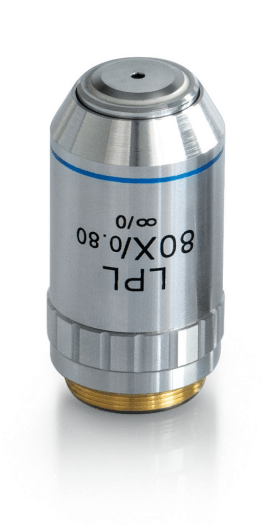 Objectif planachromatique Infinity (sans lamelle) pour une grande distance de travail, 80 x /0,8, (0,85 mm) (à ressort)