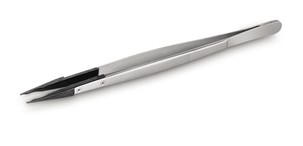 Pincette pour saisir sûrement les petits poids de contrôle