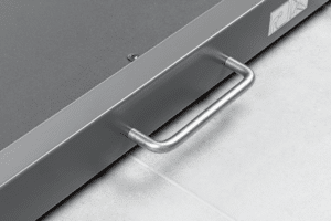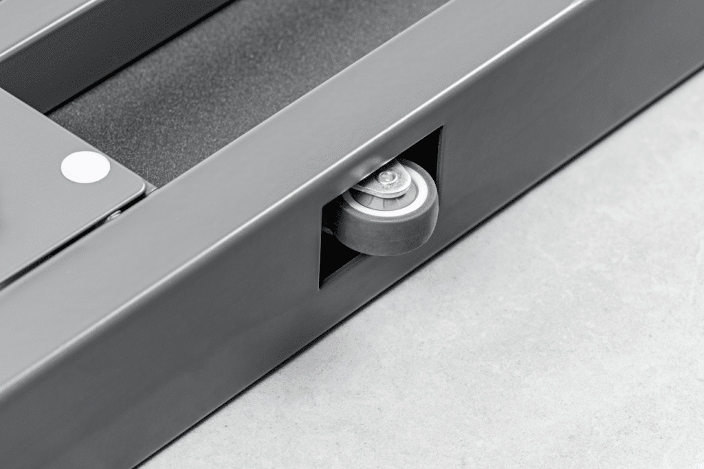 Deux roulettes et une poignée permettent de transporter facilement la balance et de la ranger pour un encombrement réduit