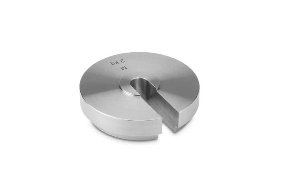 Poids individuel, Classe OIML M1, 2 kg, Poids à fente (Type B), inox finement tourné