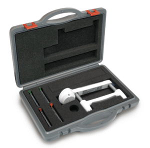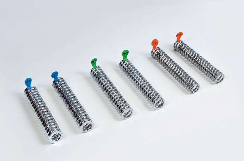 Des ressorts interchangeables permettent de modifier rapidement la résistance (les jeux de ressorts supplémentaires sont livrés également) Les différents niveaux de résistance des ressorts de série permettent d‘utiliser ce dynamomètre à poignée de manière ciblée auprès de différents groupesde patients : enfants, personnes âgées, sportifs en rééducation etc.