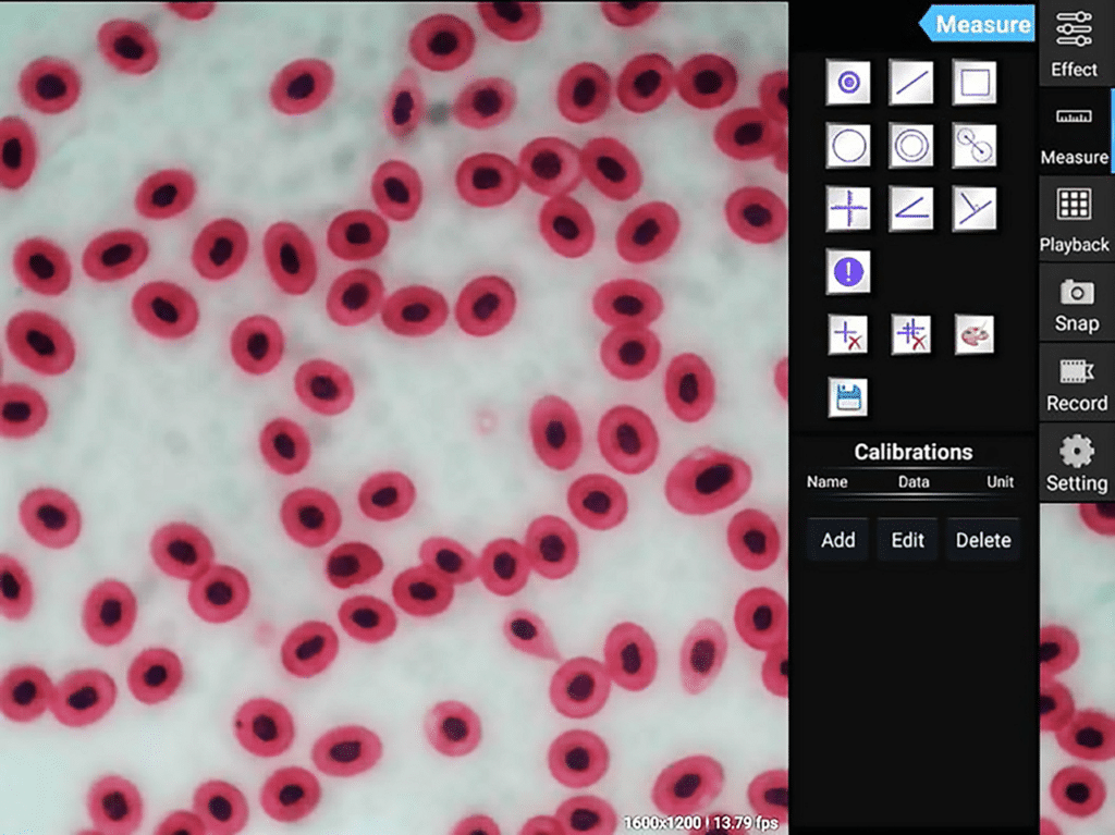 Outre la transmission live de l’image à la tablette Android, la caméra 5 MP intégrée permet également de créer des images et des vidéos pour documentation.Des mesures simples, telles que la mesure des courses, des surfaces et des angles ainsi qu’une fonction manuelle de comptage sont également disponibles