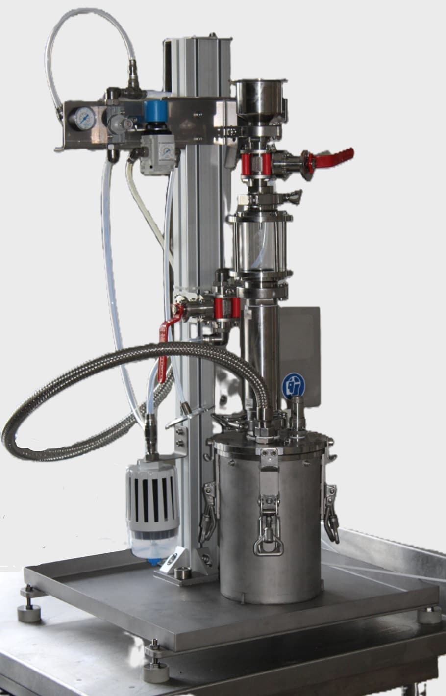 - L’exploitation des fluides cryogéniques sous pression, combinant avantageusement les effets de mise en pression (azote et autres gaz inertes) d’une matrice liquide et de sa dispersion en gouttes dans l’azote liquide pour obtenir des billes de produits surgelés riches en gaz dissous. Les produits issus de la technologie peuvent être des préparations alimentaires, des micro-organismes (probiotiques…) ou plus largement des préparations de matériels vivants.