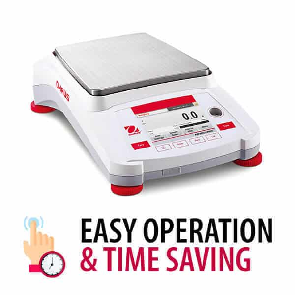 Grâce à un écran tactile couleurs, à une interface utilisateur composée d’icônes et à une conception ergonomique, les balances Adventurer sont faciles à configurer et à utiliser.