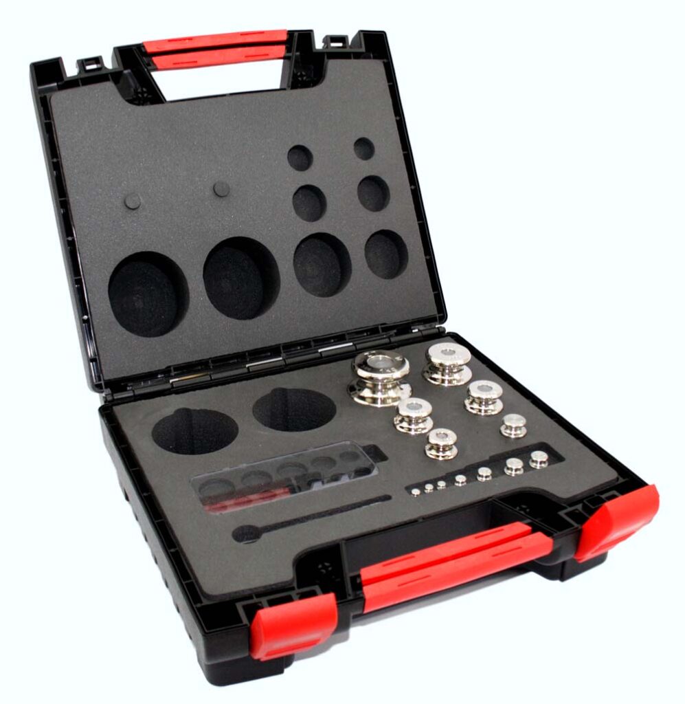 Set de M1 en laiton nickelé/inox dans une boîte en plastique 1g - 1000g