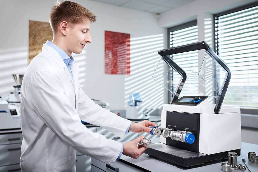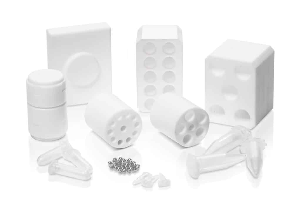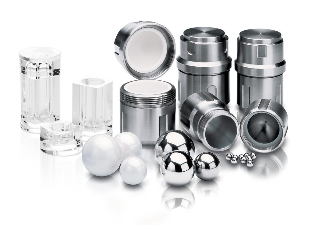 Flexibilité : 3 modes de broyage différents : sec, humide ou cryogénique, Mélange l'échantillon en poudre et le liant dans des flacons en plastique avant la préparation de pastilles, p.ex. pour l'analyse par fluorescence X, Convient pour des applications de recherche telles que la mécanochimie ou pour la désintégration de cellules biologiques par billes, Extraction de pesticides (QuEChERS) et d'ingrédients végétaux