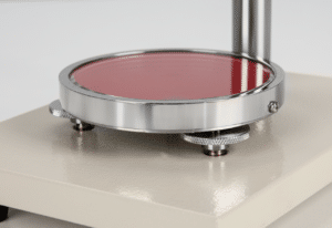 Banc d‘essai à levier avec plaque de base en verre pour des essais de dureté répétitifs