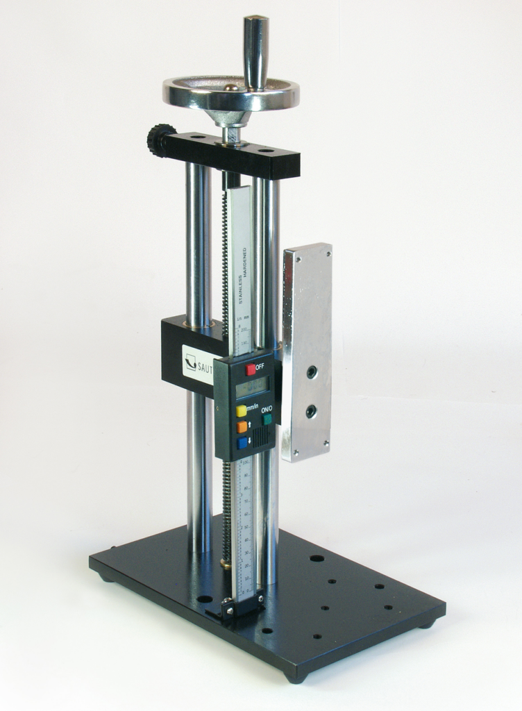 Banc d‘essai manuel pour la mesure ultraprécise des forces de traction et de compression, avec mesure de longueur digital