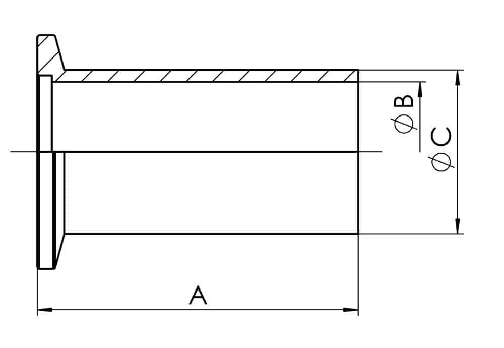 Petite bride à embout long en acier, inoxydable, KF DN 25