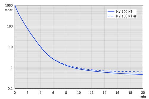 La construction très compacte de ces pompes à huit têtes permet la combinaison avantageuse d'un débit élevé avec un vide limite particulièrement bon jusqu'à 0,9 mbar
