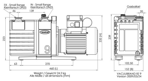 Les pompes à palettes mono-étagées RE 9 et bi-étagées RZ 9 sont puissantes avec des dimensions moyennes