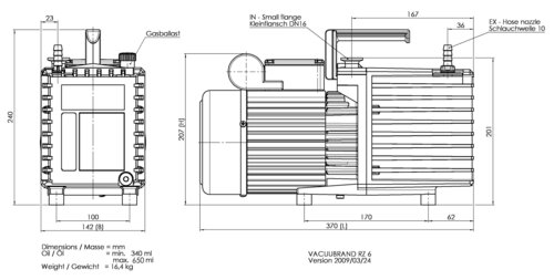 La pompe à palettes bi-étagée RZ 6 est également disponible comme ensemble complet avec séparateur de brouillard FO, vanne VS 16, vacuomètre VACUU·VIEW extended.