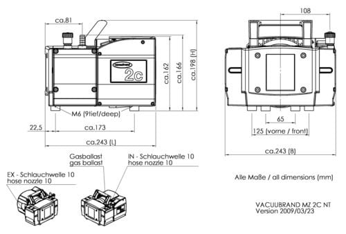 Avec son lest d'air, la pompe MZ 2C NT est adaptée pour le pompage des vapeurs facilement condensables