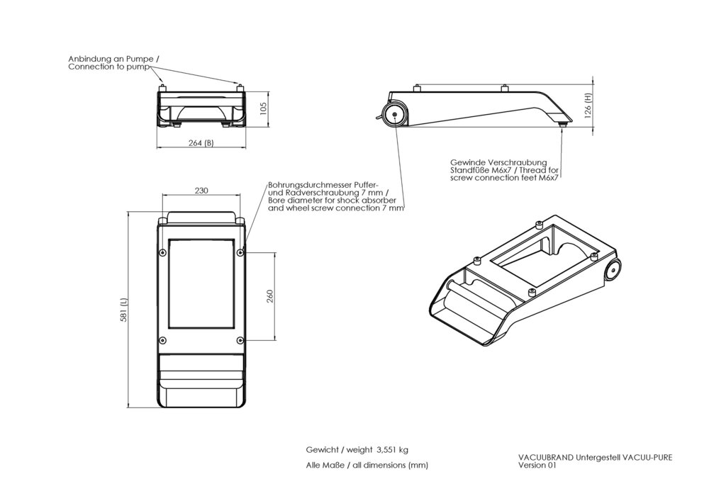| Matériaux des composants (sans étanchéité) | Shuttle VACUU·PURE, mini-chariot pour VACUU·PURE |