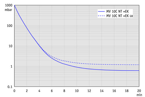 La construction très compacte de ces pompes à huit têtes permet la combinaison avantageuse d'un débit élevé avec un vide limite particulièrement bon jusqu'à 0,9 mbar