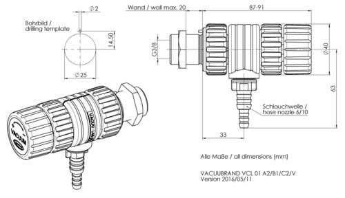 Module de régulation manuelle VACUU·LAN® VCL 01 avec pièce de raccordement A2, M35, se composant de A2, B1, C2