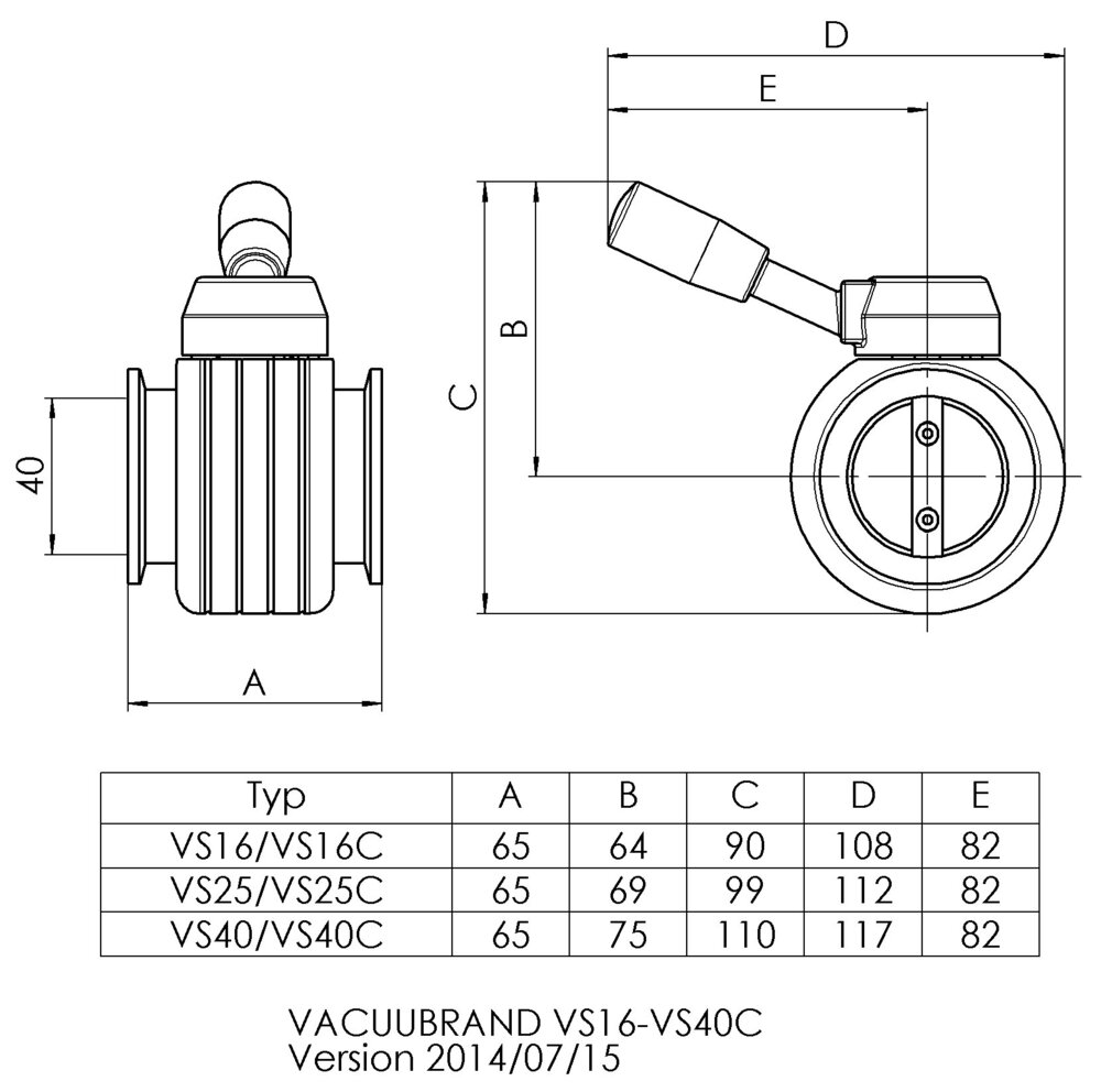 Vanne papillon VS 16, acier inoxydable, à petites brides, KF DN 16