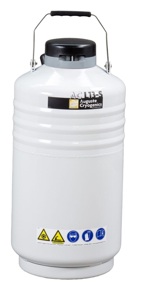 The aluminum vessels of the L | XL | XL+ | 2XL -series from the Auguste Cryogenics Medical Family are cryogenic freezer containers for long-term storage of biogenic sample material in liquid nitrogen - with many possible applications in laboratories and technology