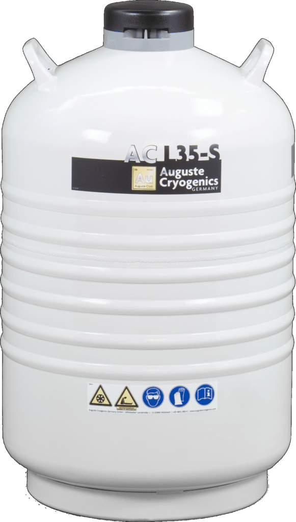The aluminum vessels of the L | XL | XL+ | 2XL -series from the Auguste Cryogenics Medical Family are cryogenic freezer containers for long-term storage of biogenic sample material in liquid nitrogen - with many possible applications in laboratories and technology
